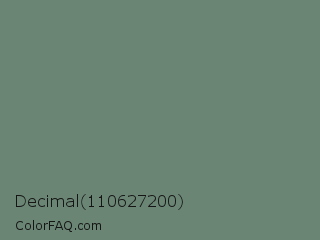 Decimal 110627200 Color is a normal green color and the nearest color is Viridian Green #678975. Hex code #6a8574 and RGB value is rgb(106,133,116). In RGB color space, this color is composed of 42% red, 52% green, 45% blue, In CMYK color space, this color is composed of 20% cyan, 0% magenta, 13% yellow , 48% black , In HSL color space, this color has a hue angle of 142° , 11% saturation and 47% lightness.