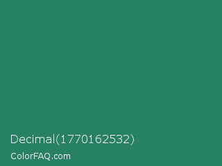 Decimal 1770162532 Color is a normal green color and the nearest color is Eucalyptus #278a5b. Hex code #298164 and RGB value is rgb(41,129,100). In RGB color space, this color is composed of 16% red, 51% green, 39% blue, In CMYK color space, this color is composed of 68% cyan, 0% magenta, 22% yellow , 49% black , In HSL color space, this color has a hue angle of 160° , 52% saturation and 33% lightness.