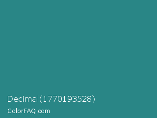 Decimal 1770193528 Color is a normal cyan color and the nearest color is Lochinvar #2c8c84. Hex code #298686 and RGB value is rgb(41,134,134). In RGB color space, this color is composed of 16% red, 53% green, 53% blue, In CMYK color space, this color is composed of 69% cyan, 0% magenta, 0% yellow , 47% black , In HSL color space, this color has a hue angle of 180° , 53% saturation and 34% lightness.