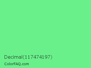 Decimal 117474197 Color is a light green color and the nearest color is Very Light Malachite Green #64e986. Hex code #6af08b and RGB value is rgb(106,240,139). In RGB color space, this color is composed of 42% red, 94% green, 55% blue, In CMYK color space, this color is composed of 56% cyan, 0% magenta, 42% yellow , 6% black , In HSL color space, this color has a hue angle of 135° , 82% saturation and 68% lightness.