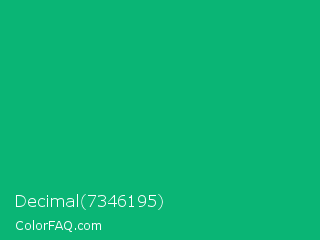 Decimal 7346195 Color is a normal green color and the nearest color is Green Munsell #00a877. Hex code #0ab575 and RGB value is rgb(10,181,117). In RGB color space, this color is composed of 4% red, 71% green, 46% blue, In CMYK color space, this color is composed of 94% cyan, 0% magenta, 35% yellow , 29% black , In HSL color space, this color has a hue angle of 158° , 90% saturation and 37% lightness.