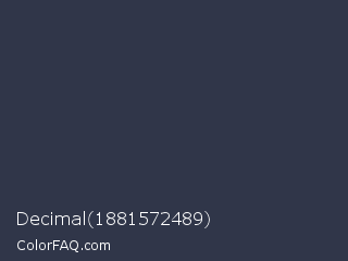 Decimal 1881572489 Color is a dark blue color and the nearest color is Tuna #353542. Hex code #303649 and RGB value is rgb(48,54,73). In RGB color space, this color is composed of 19% red, 21% green, 29% blue, In CMYK color space, this color is composed of 34% cyan, 26% magenta, 0% yellow , 71% black , In HSL color space, this color has a hue angle of 226° , 21% saturation and 24% lightness.
