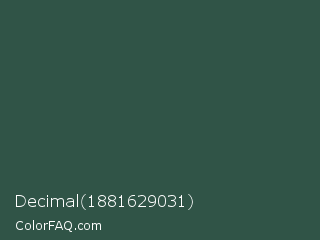 Decimal 1881629031 Color is a dark green color and the nearest color is Dark Slate Gray #2f4f4f. Hex code #305447 and RGB value is rgb(48,84,71). In RGB color space, this color is composed of 19% red, 33% green, 28% blue, In CMYK color space, this color is composed of 43% cyan, 0% magenta, 15% yellow , 67% black , In HSL color space, this color has a hue angle of 158° , 27% saturation and 26% lightness.