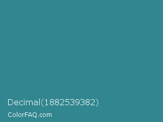 Decimal 1882539382 Color is a normal cyan color and the nearest color is Lochinvar #2c8c84. Hex code #318690 and RGB value is rgb(49,134,144). In RGB color space, this color is composed of 19% red, 53% green, 56% blue, In CMYK color space, this color is composed of 66% cyan, 7% magenta, 0% yellow , 44% black , In HSL color space, this color has a hue angle of 186° , 49% saturation and 38% lightness.