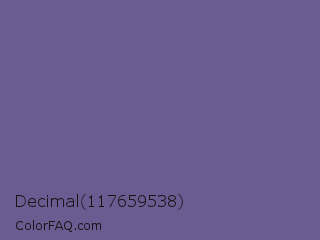 Decimal 117659538 Color is a normal indigo color and the nearest color is Dark Blue Gray #666699. Hex code #6b5b90 and RGB value is rgb(107,91,144). In RGB color space, this color is composed of 42% red, 36% green, 56% blue, In CMYK color space, this color is composed of 26% cyan, 37% magenta, 0% yellow , 44% black , In HSL color space, this color has a hue angle of 258° , 23% saturation and 46% lightness.
