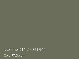 Decimal 117704194 Color is a normal yellow color and the nearest color is Kokoda #6e6d57. Hex code #6b6e5a and RGB value is rgb(107,110,90). In RGB color space, this color is composed of 42% red, 43% green, 35% blue, In CMYK color space, this color is composed of 3% cyan, 0% magenta, 18% yellow , 57% black , In HSL color space, this color has a hue angle of 69° , 10% saturation and 39% lightness.