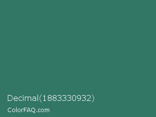 Decimal 1883330932 Color is a normal cyan color and the nearest color is Myrtle Green #317873. Hex code #327666 and RGB value is rgb(50,118,102). In RGB color space, this color is composed of 20% red, 46% green, 40% blue, In CMYK color space, this color is composed of 58% cyan, 0% magenta, 14% yellow , 54% black , In HSL color space, this color has a hue angle of 166° , 40% saturation and 33% lightness.