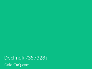 Decimal 7357328 Color is a normal green color and the nearest color is Mountain Meadow Crayola #1ab385. Hex code #0abf86 and RGB value is rgb(10,191,134). In RGB color space, this color is composed of 4% red, 75% green, 53% blue, In CMYK color space, this color is composed of 95% cyan, 0% magenta, 30% yellow , 25% black , In HSL color space, this color has a hue angle of 161° , 90% saturation and 39% lightness.