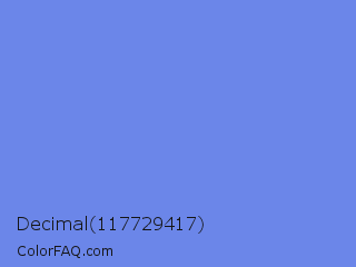 Decimal 117729417 Color is a light blue color and the nearest color is Cornflower Blue #6495ed. Hex code #6b86e9 and RGB value is rgb(107,134,233). In RGB color space, this color is composed of 42% red, 53% green, 91% blue, In CMYK color space, this color is composed of 54% cyan, 42% magenta, 0% yellow , 9% black , In HSL color space, this color has a hue angle of 227° , 74% saturation and 67% lightness.