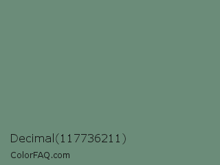 Decimal 117736211 Color is a normal green color and the nearest color is Viridian Green #678975. Hex code #6b8c79 and RGB value is rgb(107,140,121). In RGB color space, this color is composed of 42% red, 55% green, 47% blue, In CMYK color space, this color is composed of 24% cyan, 0% magenta, 14% yellow , 45% black , In HSL color space, this color has a hue angle of 145° , 13% saturation and 48% lightness.