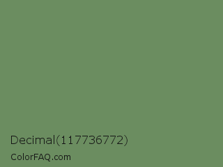 Decimal 117736772 Color is a normal green color and the nearest color is Highland #6f8e63. Hex code #6b8d60 and RGB value is rgb(107,141,96). In RGB color space, this color is composed of 42% red, 55% green, 38% blue, In CMYK color space, this color is composed of 24% cyan, 0% magenta, 32% yellow , 45% black , In HSL color space, this color has a hue angle of 105° , 19% saturation and 46% lightness.