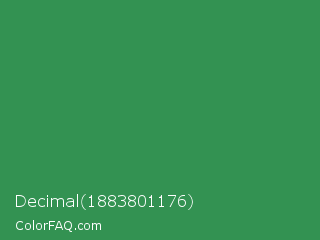 Decimal 1883801176 Color is a normal green color and the nearest color is Sea Green #2e8b57. Hex code #339252 and RGB value is rgb(51,146,82). In RGB color space, this color is composed of 20% red, 57% green, 32% blue, In CMYK color space, this color is composed of 65% cyan, 0% magenta, 44% yellow , 43% black , In HSL color space, this color has a hue angle of 140° , 48% saturation and 39% lightness.