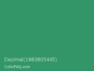 Decimal 1883805445 Color is a normal green color and the nearest color is Illuminating Emerald #319177. Hex code #339669 and RGB value is rgb(51,150,105). In RGB color space, this color is composed of 20% red, 59% green, 41% blue, In CMYK color space, this color is composed of 66% cyan, 0% magenta, 30% yellow , 41% black , In HSL color space, this color has a hue angle of 153° , 49% saturation and 39% lightness.