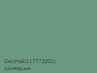 Decimal 117773202 Color is a normal green color and the nearest color is Laurel #749378. Hex code #6b9880 and RGB value is rgb(107,152,128). In RGB color space, this color is composed of 42% red, 60% green, 50% blue, In CMYK color space, this color is composed of 30% cyan, 0% magenta, 16% yellow , 40% black , In HSL color space, this color has a hue angle of 148° , 18% saturation and 51% lightness.