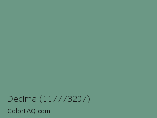 Decimal 117773207 Color is a normal green color and the nearest color is Patina #639a8f. Hex code #6b9885 and RGB value is rgb(107,152,133). In RGB color space, this color is composed of 42% red, 60% green, 52% blue, In CMYK color space, this color is composed of 30% cyan, 0% magenta, 13% yellow , 40% black , In HSL color space, this color has a hue angle of 155° , 18% saturation and 51% lightness.