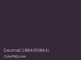 Decimal 1884450864 Color is a very dark purple color and the nearest color is Blackcurrant #32293a. Hex code #342836 and RGB value is rgb(52,40,54). In RGB color space, this color is composed of 20% red, 16% green, 21% blue, In CMYK color space, this color is composed of 4% cyan, 26% magenta, 0% yellow , 79% black , In HSL color space, this color has a hue angle of 291° , 15% saturation and 18% lightness.