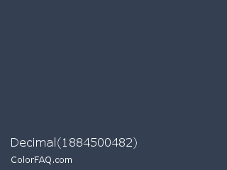 Decimal 1884500482 Color is a dark blue color and the nearest color is Charcoal #36454f. Hex code #344052 and RGB value is rgb(52,64,82). In RGB color space, this color is composed of 20% red, 25% green, 32% blue, In CMYK color space, this color is composed of 37% cyan, 22% magenta, 0% yellow , 68% black , In HSL color space, this color has a hue angle of 216° , 22% saturation and 26% lightness.