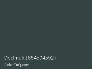 Decimal 1884504592 Color is a dark cyan color and the nearest color is Cape Cod #3c4443. Hex code #344442 and RGB value is rgb(52,68,66). In RGB color space, this color is composed of 20% red, 27% green, 26% blue, In CMYK color space, this color is composed of 24% cyan, 0% magenta, 3% yellow , 73% black , In HSL color space, this color has a hue angle of 173° , 13% saturation and 24% lightness.