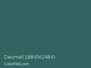 Decimal 1884562484 Color is a dark cyan color and the nearest color is Casal #2f6168. Hex code #346462 and RGB value is rgb(52,100,98). In RGB color space, this color is composed of 20% red, 39% green, 38% blue, In CMYK color space, this color is composed of 48% cyan, 0% magenta, 2% yellow , 61% black , In HSL color space, this color has a hue angle of 178° , 32% saturation and 30% lightness.