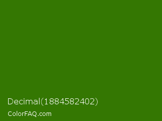 Decimal 1884582402 Color is a dark green color and the nearest color is Napier Green #2a8000. Hex code #347702 and RGB value is rgb(52,119,2). In RGB color space, this color is composed of 20% red, 47% green, 1% blue, In CMYK color space, this color is composed of 56% cyan, 0% magenta, 98% yellow , 53% black , In HSL color space, this color has a hue angle of 94° , 97% saturation and 24% lightness.