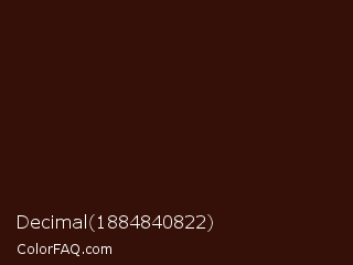 Decimal 1884840822 Color is a very dark red color and the nearest color is Rebel #3c1206. Hex code #351008 and RGB value is rgb(53,16,8). In RGB color space, this color is composed of 21% red, 6% green, 3% blue, In CMYK color space, this color is composed of 0% cyan, 70% magenta, 85% yellow , 79% black , In HSL color space, this color has a hue angle of 11° , 74% saturation and 12% lightness.