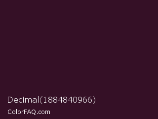 Decimal 1884840966 Color is a very dark magenta color and the nearest color is Melanzane #300529. Hex code #351026 and RGB value is rgb(53,16,38). In RGB color space, this color is composed of 21% red, 6% green, 15% blue, In CMYK color space, this color is composed of 0% cyan, 70% magenta, 28% yellow , 79% black , In HSL color space, this color has a hue angle of 324° , 54% saturation and 14% lightness.