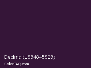 Decimal 1884845828 Color is a very dark magenta color and the nearest color is Dark Purple #301934. Hex code #351538 and RGB value is rgb(53,21,56). In RGB color space, this color is composed of 21% red, 8% green, 22% blue, In CMYK color space, this color is composed of 5% cyan, 63% magenta, 0% yellow , 78% black , In HSL color space, this color has a hue angle of 295° , 45% saturation and 15% lightness.