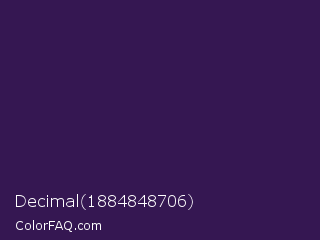 Decimal 1884848706 Color is a very dark purple color and the nearest color is Deep Grape #381a51. Hex code #351752 and RGB value is rgb(53,23,82). In RGB color space, this color is composed of 21% red, 9% green, 32% blue, In CMYK color space, this color is composed of 35% cyan, 72% magenta, 0% yellow , 68% black , In HSL color space, this color has a hue angle of 271° , 56% saturation and 21% lightness.