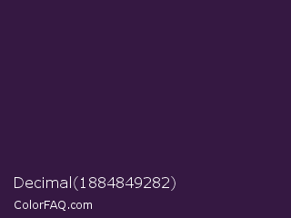 Decimal 1884849282 Color is a very dark purple color and the nearest color is Valentino #350e42. Hex code #351842 and RGB value is rgb(53,24,66). In RGB color space, this color is composed of 21% red, 9% green, 26% blue, In CMYK color space, this color is composed of 20% cyan, 64% magenta, 0% yellow , 74% black , In HSL color space, this color has a hue angle of 281° , 47% saturation and 18% lightness.
