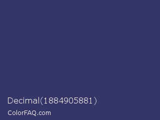 Decimal 1884905881 Color is a normal blue color and the nearest color is Deep Koamaru #333366. Hex code #353667 and RGB value is rgb(53,54,103). In RGB color space, this color is composed of 21% red, 21% green, 40% blue, In CMYK color space, this color is composed of 49% cyan, 48% magenta, 0% yellow , 60% black , In HSL color space, this color has a hue angle of 239° , 32% saturation and 31% lightness.