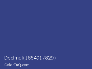 Decimal 1884917829 Color is a normal blue color and the nearest color is Chambray #354e8c. Hex code #354185 and RGB value is rgb(53,65,133). In RGB color space, this color is composed of 21% red, 25% green, 52% blue, In CMYK color space, this color is composed of 60% cyan, 51% magenta, 0% yellow , 48% black , In HSL color space, this color has a hue angle of 231° , 43% saturation and 36% lightness.