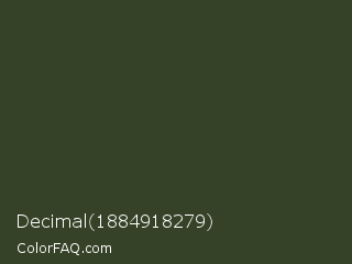 Decimal 1884918279 Color is a very dark green color and the nearest color is Kombu Green #354230. Hex code #354227 and RGB value is rgb(53,66,39). In RGB color space, this color is composed of 21% red, 26% green, 15% blue, In CMYK color space, this color is composed of 20% cyan, 0% magenta, 41% yellow , 74% black , In HSL color space, this color has a hue angle of 89° , 26% saturation and 21% lightness.
