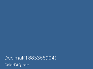 Decimal 1885368904 Color is a normal blue color and the nearest color is B Dazzled Blue #2e5894. Hex code #356190 and RGB value is rgb(53,97,144). In RGB color space, this color is composed of 21% red, 38% green, 56% blue, In CMYK color space, this color is composed of 63% cyan, 33% magenta, 0% yellow , 44% black , In HSL color space, this color has a hue angle of 211° , 46% saturation and 39% lightness.