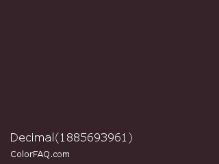 Decimal 1885693961 Color is a very dark rose color and the nearest color is Thunder #33292f. Hex code #362329 and RGB value is rgb(54,35,41). In RGB color space, this color is composed of 21% red, 14% green, 16% blue, In CMYK color space, this color is composed of 0% cyan, 35% magenta, 24% yellow , 79% black , In HSL color space, this color has a hue angle of 341° , 21% saturation and 17% lightness.