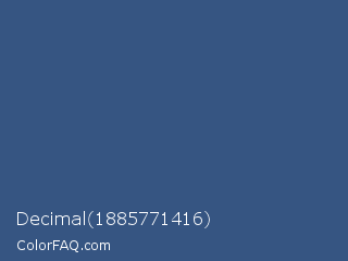 Decimal 1885771416 Color is a normal blue color and the nearest color is Chambray #354e8c. Hex code #365582 and RGB value is rgb(54,85,130). In RGB color space, this color is composed of 21% red, 33% green, 51% blue, In CMYK color space, this color is composed of 58% cyan, 35% magenta, 0% yellow , 49% black , In HSL color space, this color has a hue angle of 216° , 41% saturation and 36% lightness.