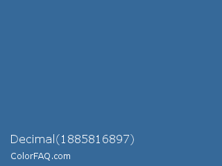 Decimal 1885816897 Color is a normal blue color and the nearest color is Queen Blue #436b95. Hex code #366999 and RGB value is rgb(54,105,153). In RGB color space, this color is composed of 21% red, 41% green, 60% blue, In CMYK color space, this color is composed of 65% cyan, 31% magenta, 0% yellow , 40% black , In HSL color space, this color has a hue angle of 209° , 48% saturation and 41% lightness.