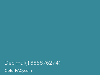 Decimal 1885876274 Color is a normal cyan color and the nearest color is Astral #327da0. Hex code #368998 and RGB value is rgb(54,137,152). In RGB color space, this color is composed of 21% red, 54% green, 60% blue, In CMYK color space, this color is composed of 64% cyan, 10% magenta, 0% yellow , 40% black , In HSL color space, this color has a hue angle of 189° , 48% saturation and 40% lightness.