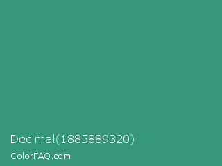 Decimal 1885889320 Color is a normal green color and the nearest color is Illuminating Emerald #319177. Hex code #369678 and RGB value is rgb(54,150,120). In RGB color space, this color is composed of 21% red, 59% green, 47% blue, In CMYK color space, this color is composed of 64% cyan, 0% magenta, 20% yellow , 41% black , In HSL color space, this color has a hue angle of 161° , 47% saturation and 40% lightness.