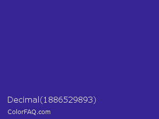 Decimal 1886529893 Color is a normal indigo color and the nearest color is Blue Pigment #333399. Hex code #372595 and RGB value is rgb(55,37,149). In RGB color space, this color is composed of 22% red, 15% green, 58% blue, In CMYK color space, this color is composed of 63% cyan, 75% magenta, 0% yellow , 42% black , In HSL color space, this color has a hue angle of 250° , 60% saturation and 36% lightness.