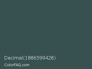 Decimal 1886599428 Color is a dark cyan color and the nearest color is Dark Slate Gray #2f4f4f. Hex code #375050 and RGB value is rgb(55,80,80). In RGB color space, this color is composed of 22% red, 31% green, 31% blue, In CMYK color space, this color is composed of 31% cyan, 0% magenta, 0% yellow , 69% black , In HSL color space, this color has a hue angle of 180° , 19% saturation and 26% lightness.