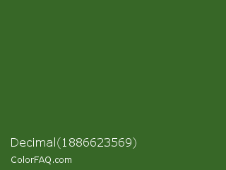 Decimal 1886623569 Color is a dark green color and the nearest color is Mughal Green #306030. Hex code #376727 and RGB value is rgb(55,103,39). In RGB color space, this color is composed of 22% red, 40% green, 15% blue, In CMYK color space, this color is composed of 47% cyan, 0% magenta, 62% yellow , 60% black , In HSL color space, this color has a hue angle of 105° , 45% saturation and 28% lightness.
