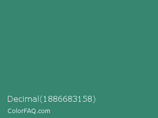Decimal 1886683158 Color is a normal green color and the nearest color is Viridian #40826d. Hex code #378770 and RGB value is rgb(55,135,112). In RGB color space, this color is composed of 22% red, 53% green, 44% blue, In CMYK color space, this color is composed of 59% cyan, 0% magenta, 17% yellow , 47% black , In HSL color space, this color has a hue angle of 163° , 42% saturation and 37% lightness.