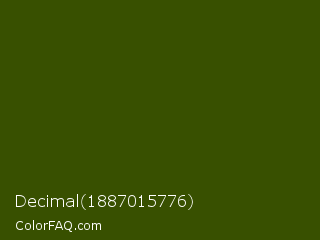 Decimal 1887015776 Color is a very dark lime color and the nearest color is Verdun Green #495400. Hex code #385000 and RGB value is rgb(56,80,0). In RGB color space, this color is composed of 22% red, 31% green, 0% blue, In CMYK color space, this color is composed of 30% cyan, 0% magenta, 100% yellow , 69% black , In HSL color space, this color has a hue angle of 78° , 100% saturation and 16% lightness.