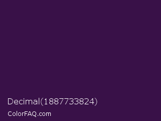 Decimal 1887733824 Color is a very dark purple color and the nearest color is Valentino #350e42. Hex code #391148 and RGB value is rgb(57,17,72). In RGB color space, this color is composed of 22% red, 7% green, 28% blue, In CMYK color space, this color is composed of 21% cyan, 76% magenta, 0% yellow , 72% black , In HSL color space, this color has a hue angle of 284° , 62% saturation and 17% lightness.