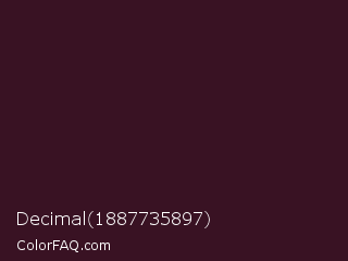 Decimal 1887735897 Color is a very dark rose color and the nearest color is Jon #3b1f1f. Hex code #391223 and RGB value is rgb(57,18,35). In RGB color space, this color is composed of 22% red, 7% green, 14% blue, In CMYK color space, this color is composed of 0% cyan, 68% magenta, 39% yellow , 78% black , In HSL color space, this color has a hue angle of 334° , 52% saturation and 15% lightness.