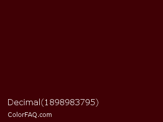 Decimal 1898983795 Color is a very dark red color and the nearest color is Burnt Maroon #420303. Hex code #400005 and RGB value is rgb(64,0,5). In RGB color space, this color is composed of 25% red, 0% green, 2% blue, In CMYK color space, this color is composed of 0% cyan, 100% magenta, 92% yellow , 75% black , In HSL color space, this color has a hue angle of 355° , 100% saturation and 13% lightness.