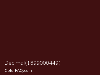 Decimal 1899000449 Color is a very dark red color and the nearest color is Dark Sienna #3c1414. Hex code #401011 and RGB value is rgb(64,16,17). In RGB color space, this color is composed of 25% red, 6% green, 7% blue, In CMYK color space, this color is composed of 0% cyan, 75% magenta, 73% yellow , 75% black , In HSL color space, this color has a hue angle of 359° , 60% saturation and 16% lightness.