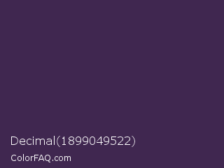 Decimal 1899049522 Color is a dark purple color and the nearest color is Martinique #363050. Hex code #402750 and RGB value is rgb(64,39,80). In RGB color space, this color is composed of 25% red, 15% green, 31% blue, In CMYK color space, this color is composed of 20% cyan, 51% magenta, 0% yellow , 69% black , In HSL color space, this color has a hue angle of 277° , 34% saturation and 23% lightness.