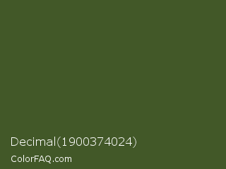 Decimal 1900374024 Color is a dark green color and the nearest color is Dark Moss Green #4a5d23. Hex code #425828 and RGB value is rgb(66,88,40). In RGB color space, this color is composed of 26% red, 35% green, 16% blue, In CMYK color space, this color is composed of 25% cyan, 0% magenta, 55% yellow , 65% black , In HSL color space, this color has a hue angle of 88° , 38% saturation and 25% lightness.