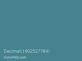Decimal 1902527784 Color is a normal cyan color and the nearest color is Smalt Blue #51808f. Hex code #458390 and RGB value is rgb(69,131,144). In RGB color space, this color is composed of 27% red, 51% green, 56% blue, In CMYK color space, this color is composed of 52% cyan, 9% magenta, 0% yellow , 44% black , In HSL color space, this color has a hue angle of 190° , 35% saturation and 42% lightness.